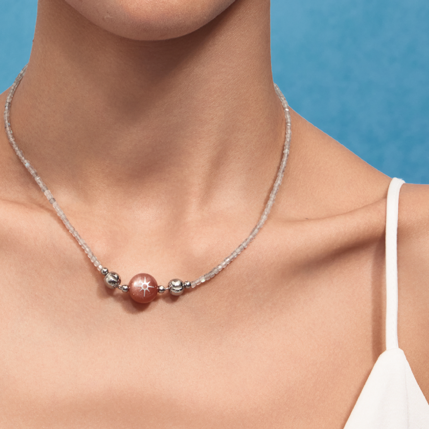 Gray Moonstone: The gray moonstone selected this time has extremely high transparency, colorful refracted light, bright and soft luster, and extremely high clarity. It perfectly matches the Sun, Moon and Star series, and its superb glitter symbolizes the stars in the Milky Way.